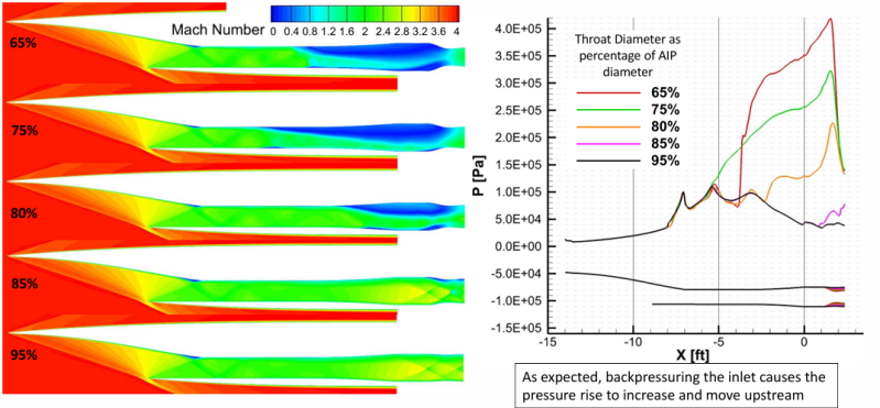 Over the summer at NASA I focused on supersonic jet inlets (Pitot, axisymmetric mixed-compression spike inlets, and streamline-traced) and built a clean, repeatable CFD pipeline. I wired SUPIN → ESP → S2S → Vulcan so I could go from parametric inlet definitions to CAD (.csm → ESP) to adaptive meshes and finally to flow solutions. Using S2S, I started with a coarse grid and iterated to higher complexity, so shocks and boundary layers were automatically resolved; then I ran Vulcan on the adapted meshes. I validated my workflow against Wind-US solutions and used AIP (Aerodynamic interface Plane) metrics such as Pressure Recovery and Distortion to compare designs and backpressure settings. I also mapped how moves the normal shock. I showed how backpressuring shifts the pressure rise upstream and noted that ramp bleed would mitigate distortion.